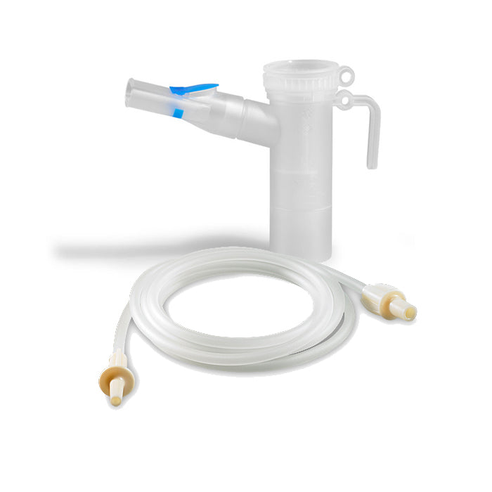 PARI LC Plus nebuliser with universal mouthpiece and connection tubing.